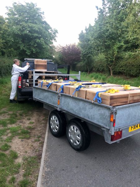 The big event for this month was moving bees to the heather. I got all of the hives I was moving ready the evening before I moved them and was then up at 4am the next morning to begin the move! All the hives were safely loaded onto the trailer and strapped down. By 4:50am I was heading North to the Peak District.