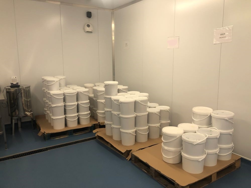 The photo shows some of our honey buckets. For those that have been following for sometime you will know that we had a new much larger honey room last year that was supposed to last a very long time and already it’s looking a bit on the full side!! eek!